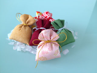 お香の中でも馴染み深いのが匂い袋です。刻んだ香原料を調合して袋に入れたものです。常温で香りを楽しみます。